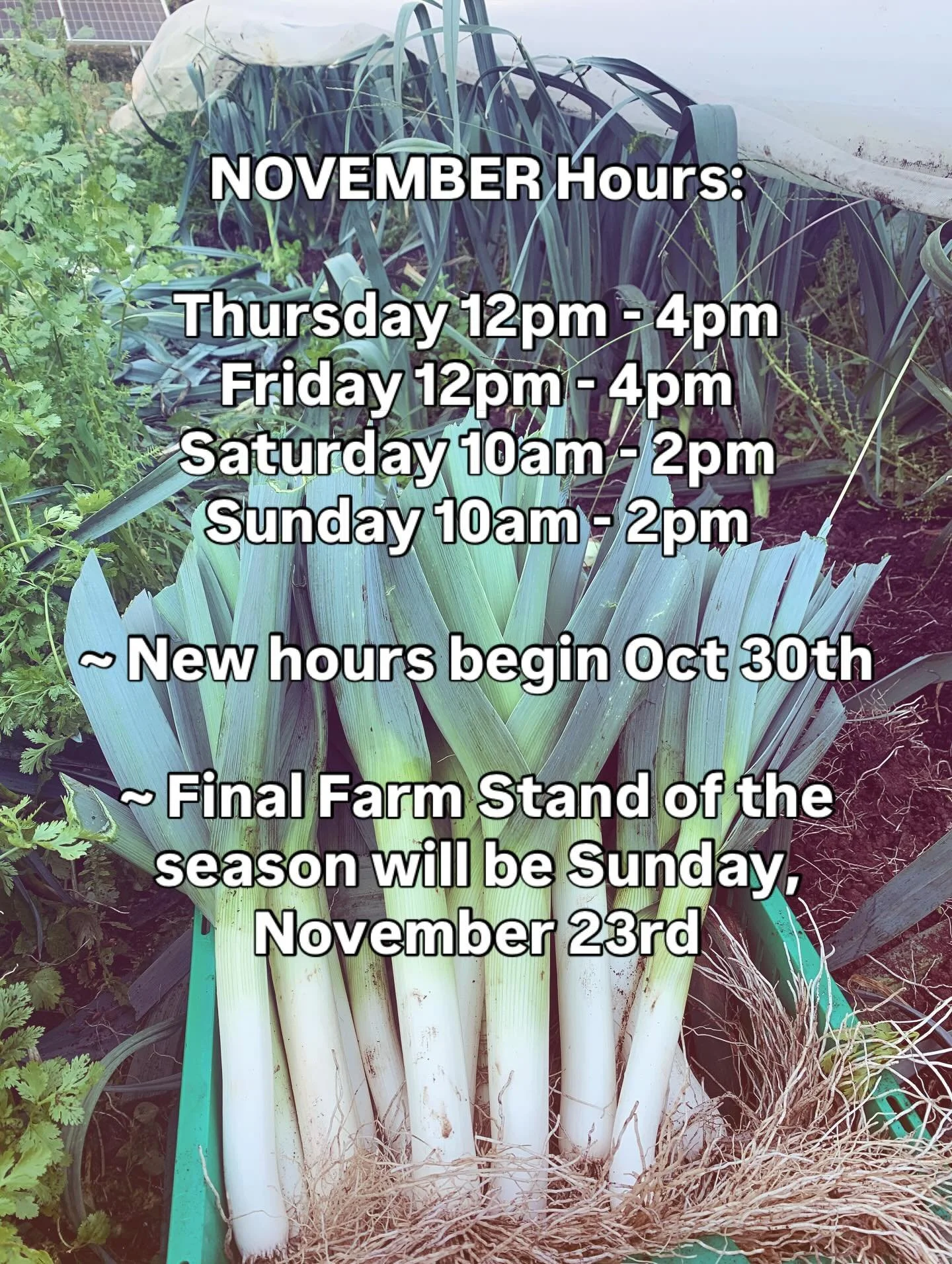 Final Farm Stand day will be November 23rd - Stay tuned for Online Order plans