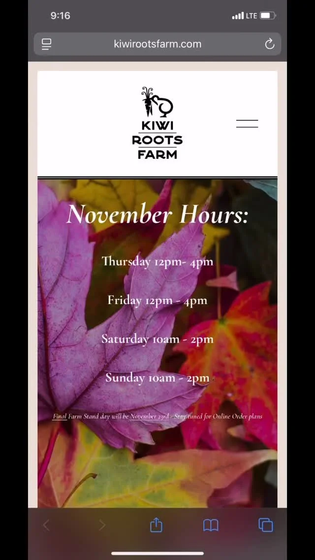Taking in to account the weather and high demand we will need to assess where we are at after our Final Farm Stand this week. We planned to take Thanksgiving week off and will update everyone during this week. I am confident we will have something on offer for sure, so please keep an eye on our Website and Social Media post to see when or whether we go to Online Sales. Please note Online Sales will be for pick up only. Stay tuned for updates :)
